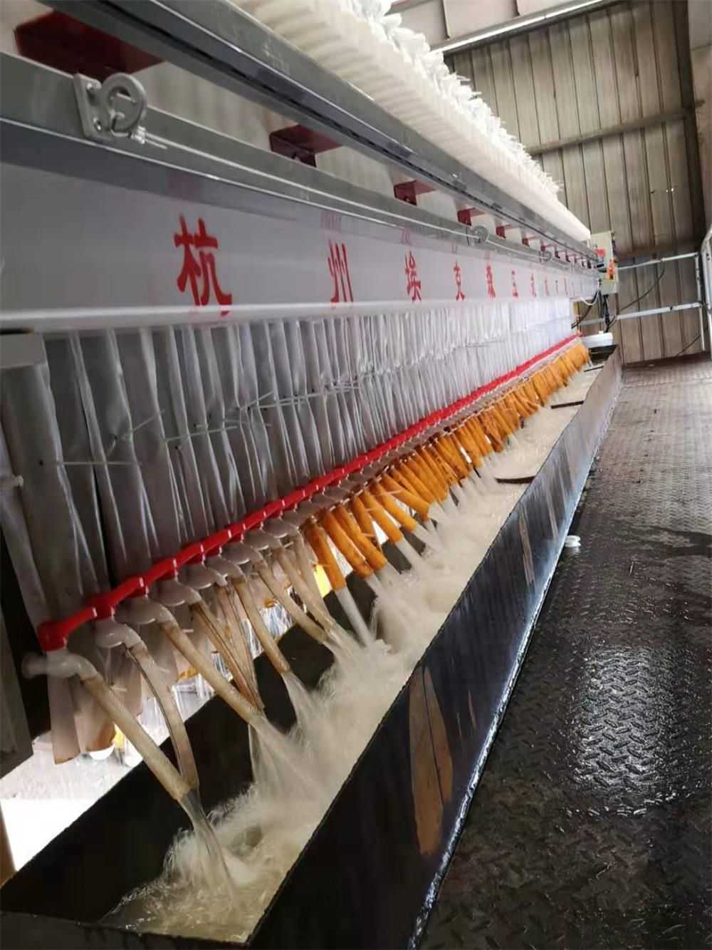 全自動廂式壓濾機與普通廂式壓濾機的不同之處在于多了自動拉板系統,自動接液翻板,自動清洗濾布等系統。使設備操作更加智能化自動化。整機結構設計科學合理,機械強度高、結構穩(wěn)固、經久耐用并且便于操作和維護。